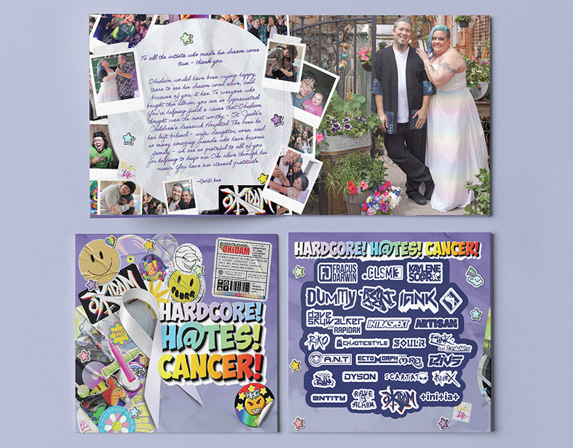 IN MEMORIAM of Brandon (Okidam) whom passed away from cancer on October 31, 2023. As part of his legacy, he has given me great detail the images used in this album to represent his life and his work as a DJ. Pictured are his many drawings as well as sentimental and timeless photos of him, his friends, and family. This record is benefitting St. Jude's Children's Cancer Research in Brandon's honor and my services were donated with loving support for his memory.